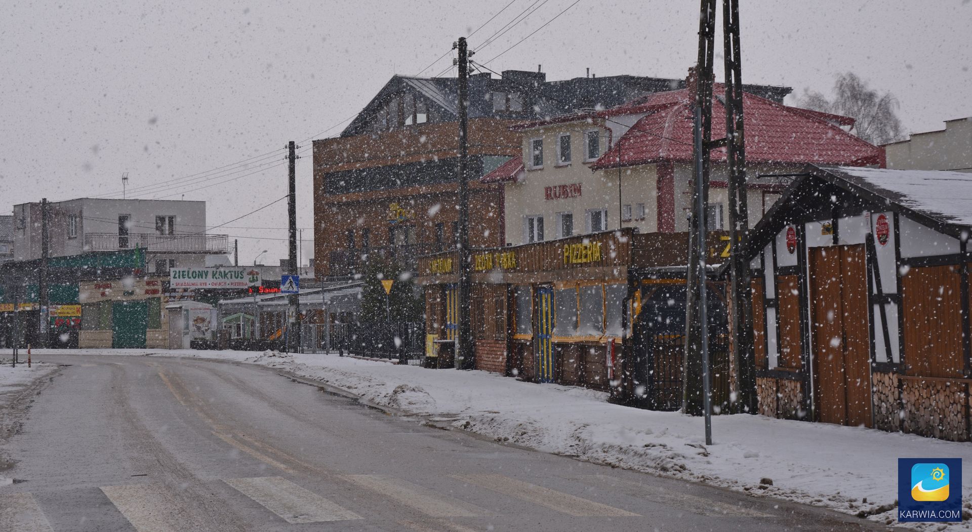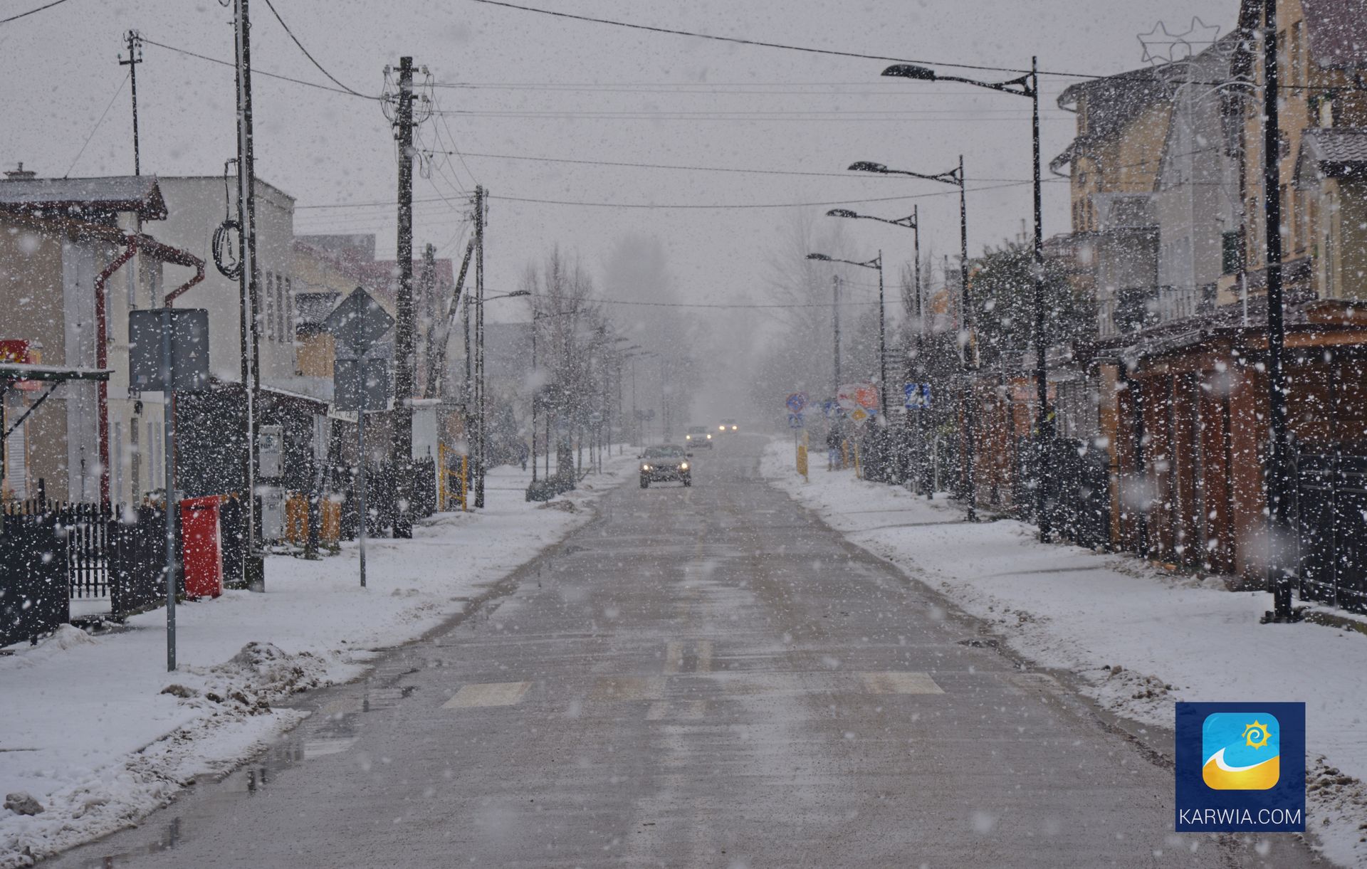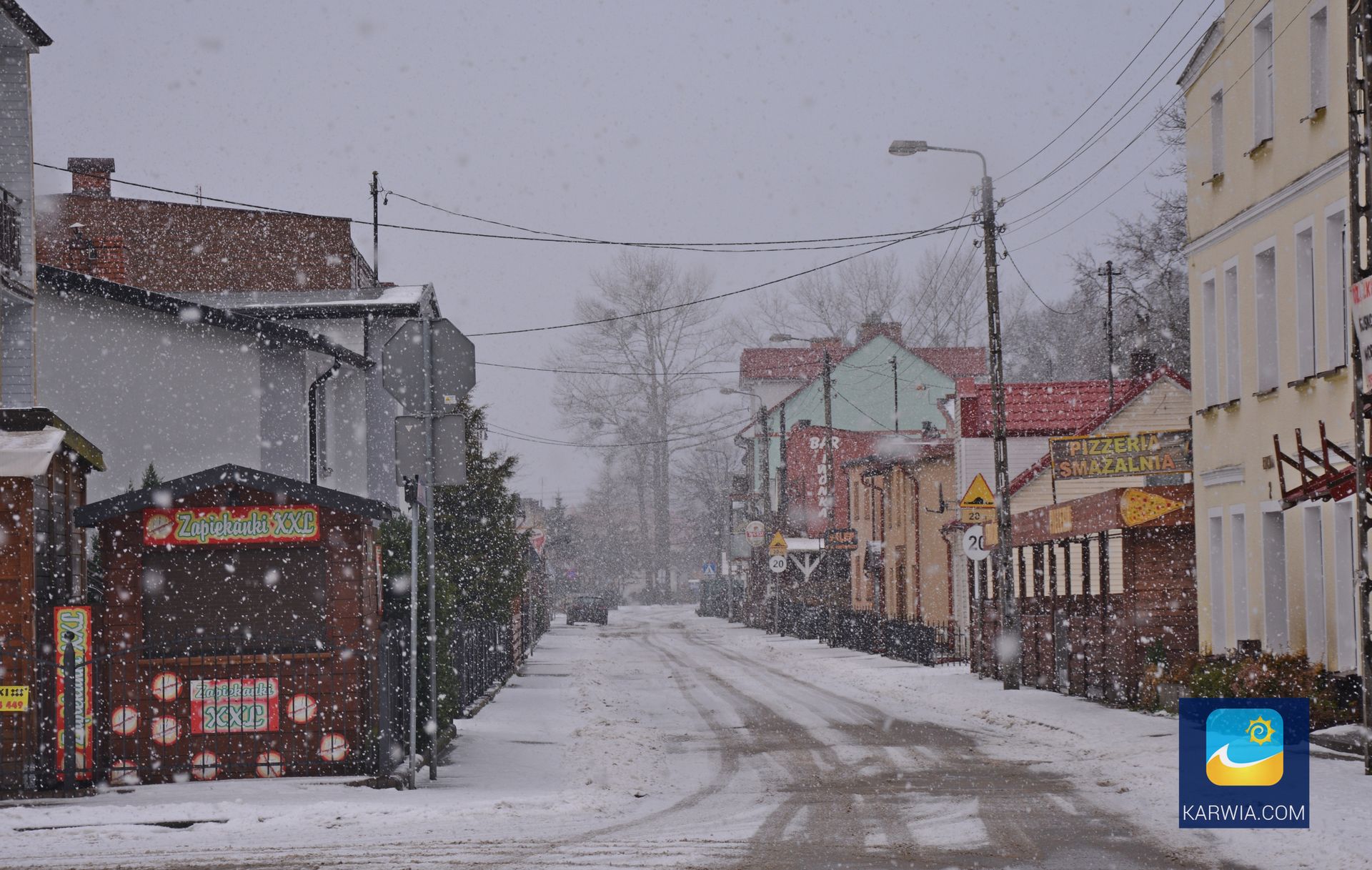 Ulica Wojska Polskiego w zimowej scenerii.